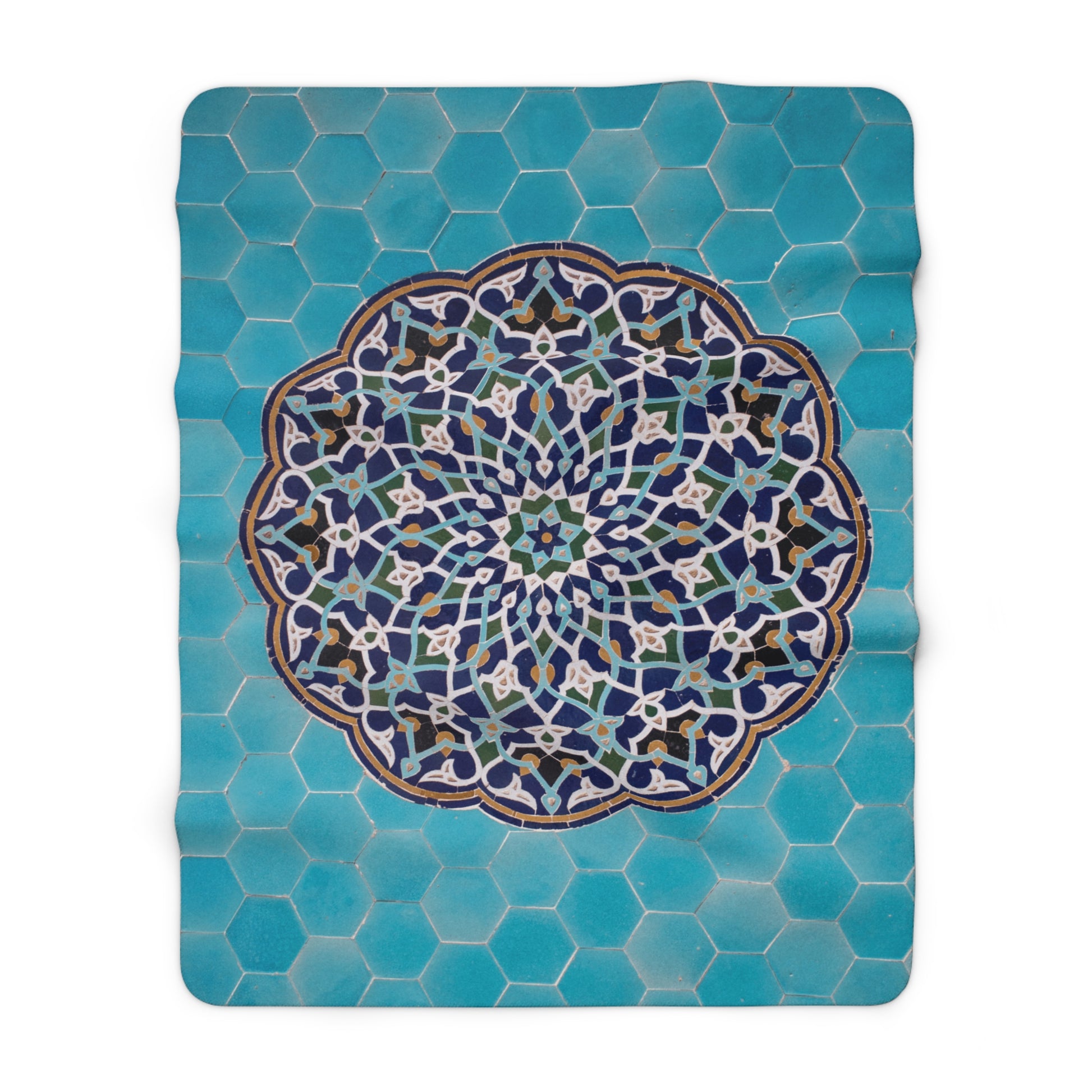 Wrap yourself in warmth and timeless art. Inspired by centuries-old Persian blue tilework, this plush Sherpa blanket turns every cozy moment into a piece of history.