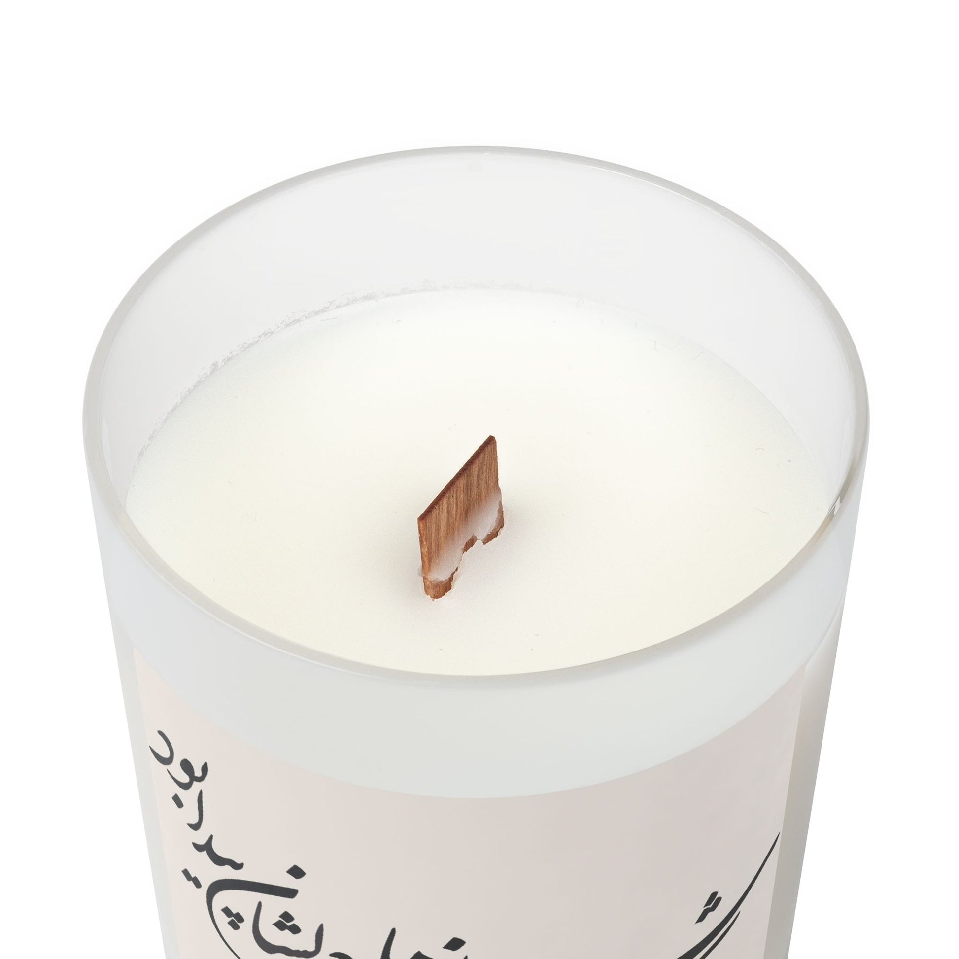 A candle wrapped in the elegance of Persian calligraphy. Where every flicker whispers poetry and timeless words in the glow.