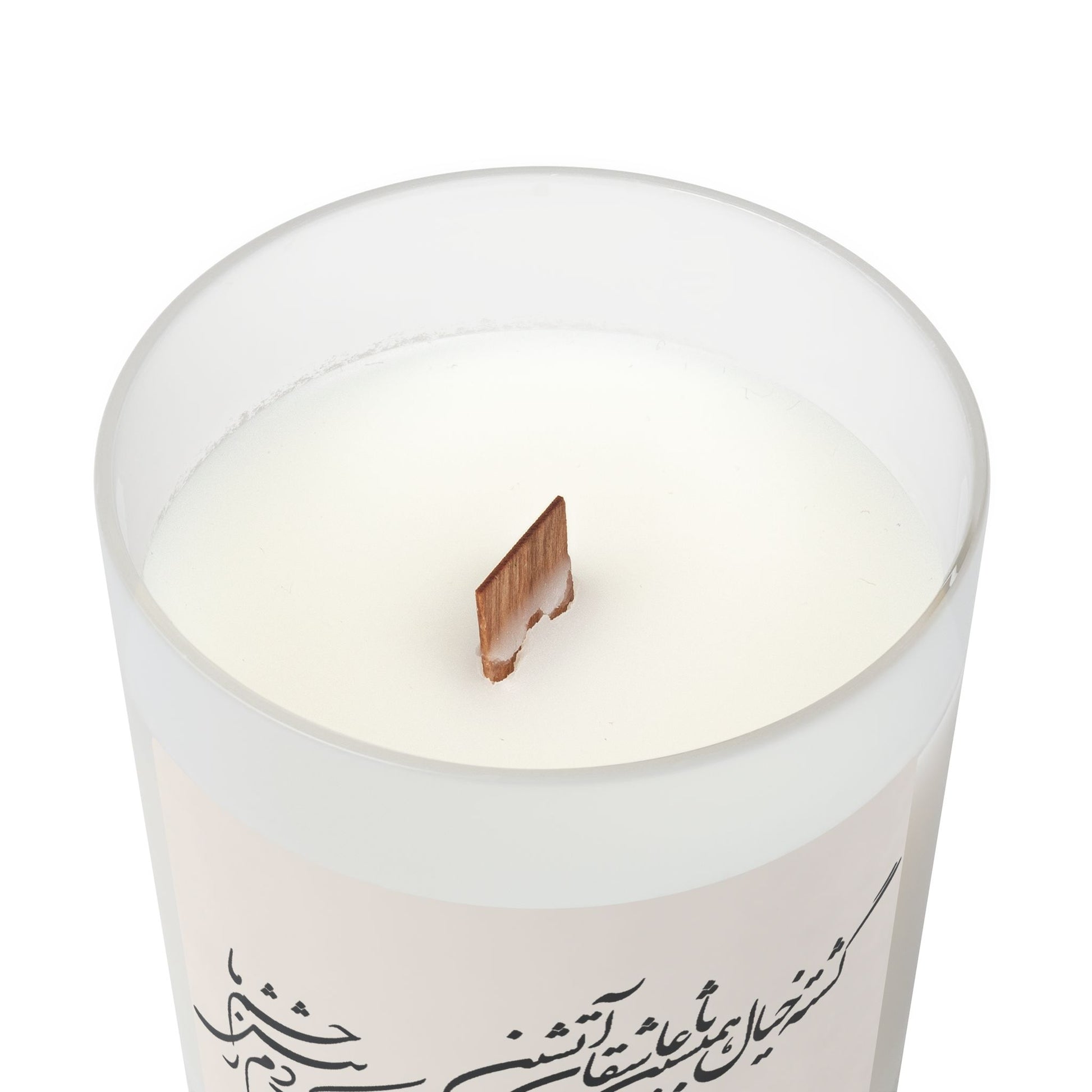 A candle wrapped in the elegance of Persian calligraphy. Where every flicker whispers poetry and timeless words in the glow.