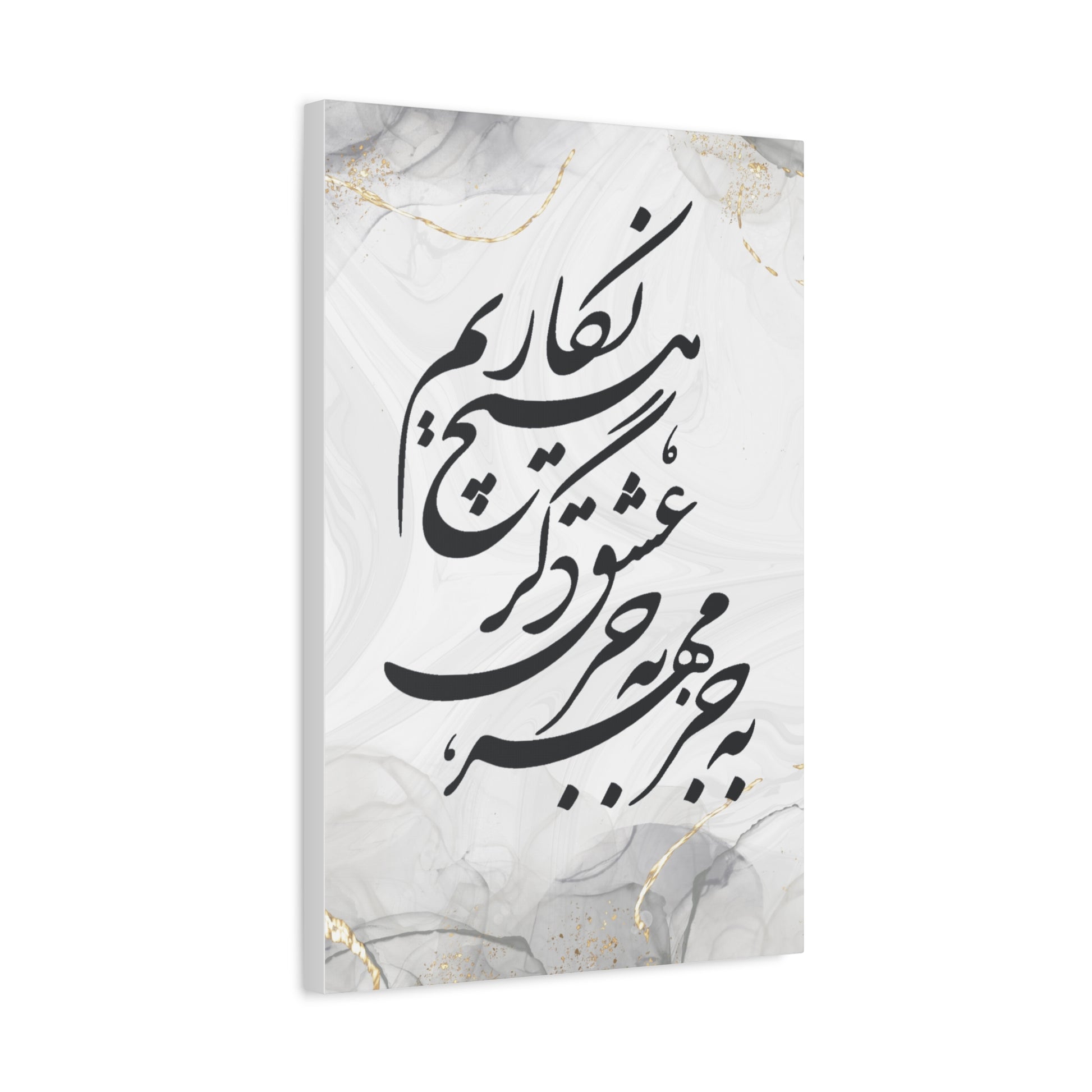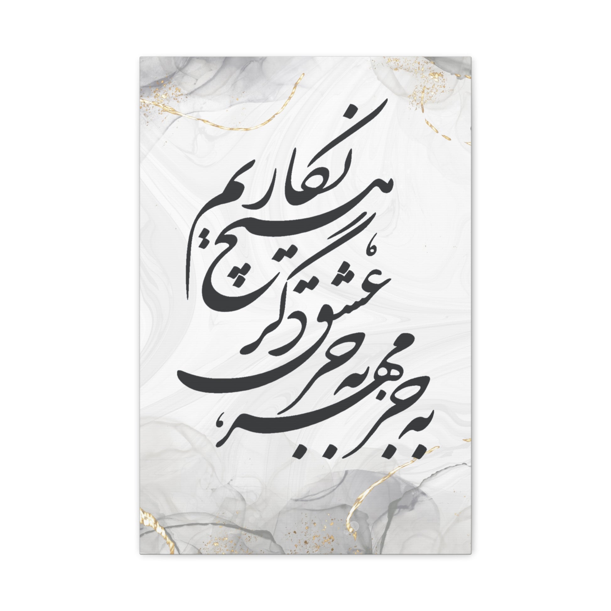 A canvas that speaks the heart’s truth. Featuring the timeless Persian verse “به جز مهر، به جز عشق دگر هیچ نکاریم” — a daily reminder that love is the only thing worth planting.