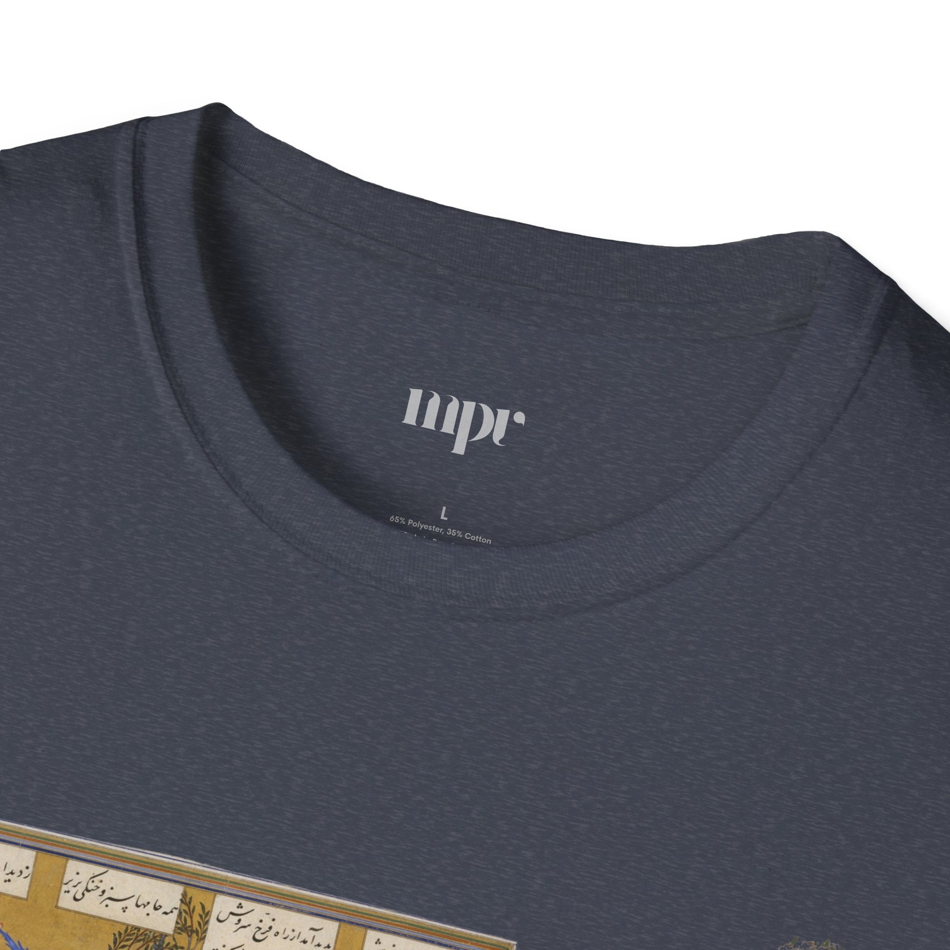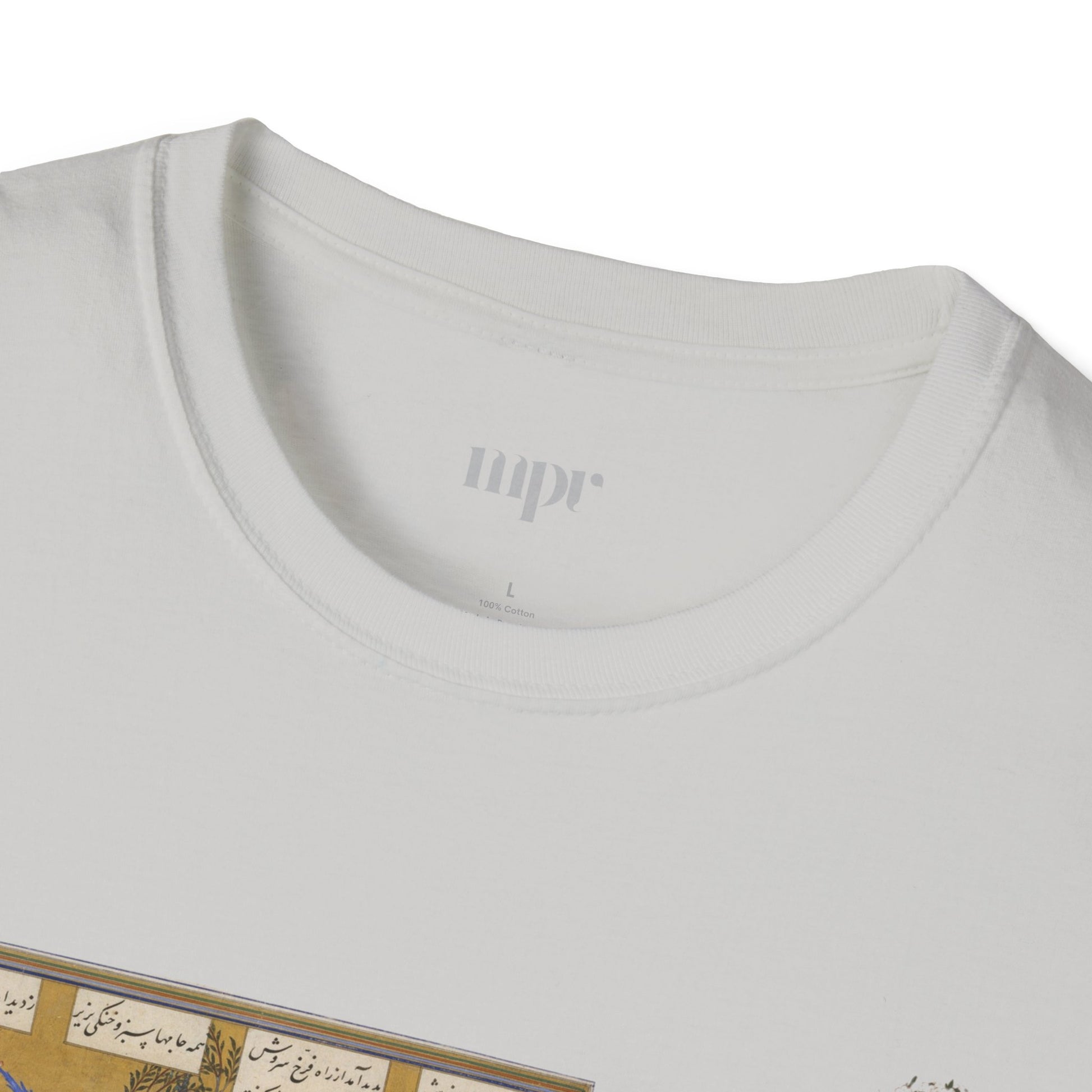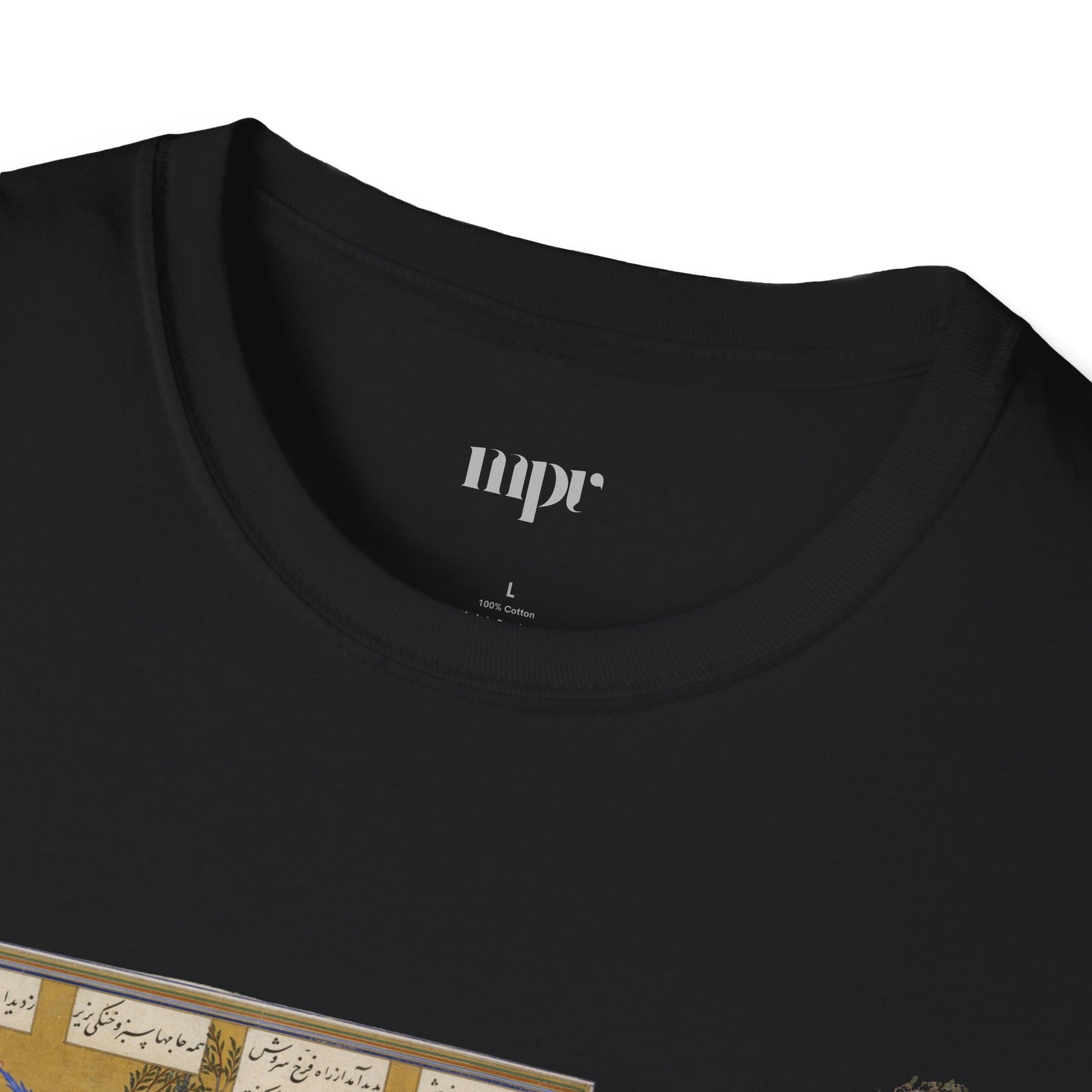 This tee features an iconic miniature from the Tahmasp Shahnameh — The Angel Surush Rescues Khusrau Parviz. Where celestial power meets royal fate in a swirl of color and motion. A tribute to mythology, artistry, and the timeless power of Persian storytelling. Wear the legend.