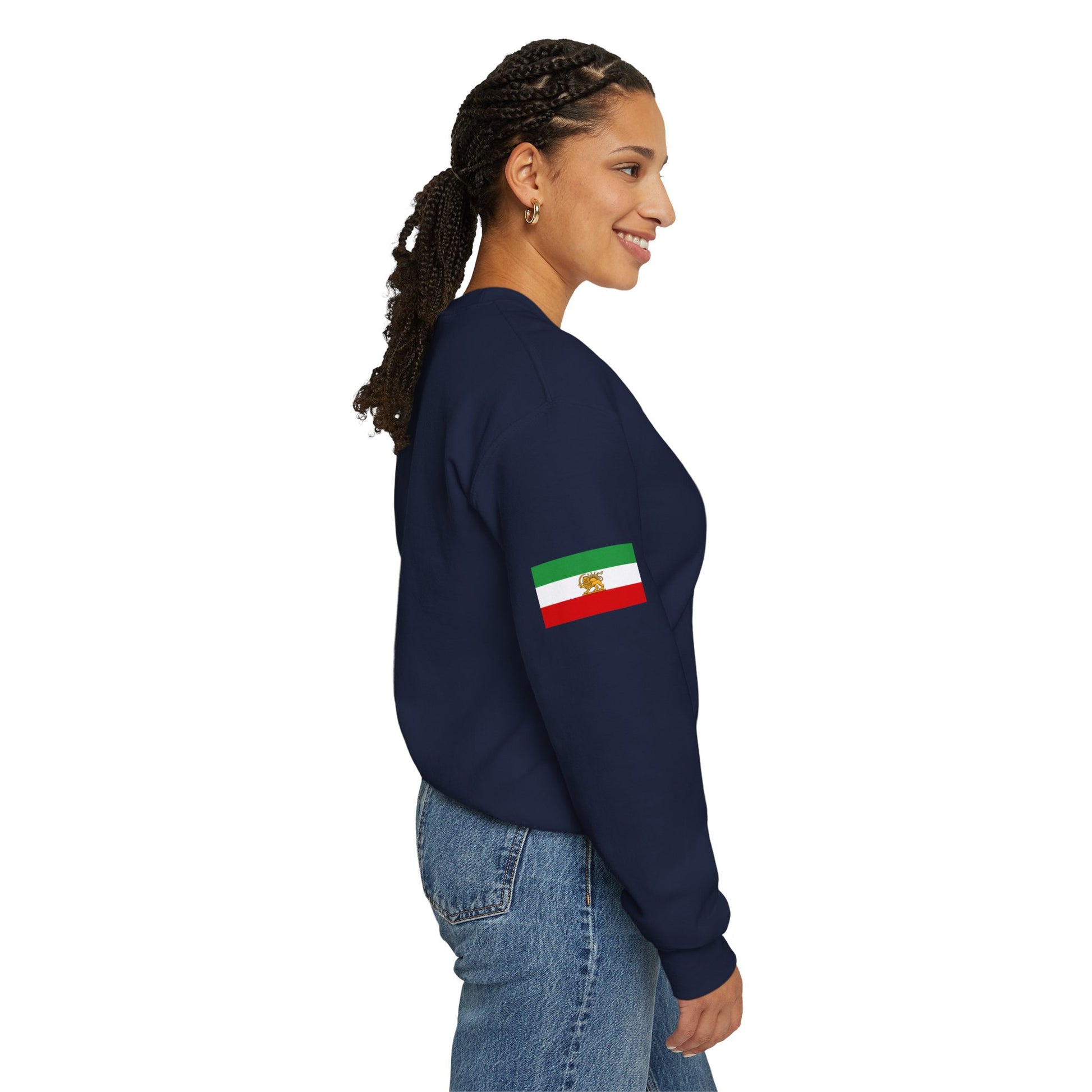 A bold sweatshirt featuring the iconic Lion and Sun Iran flag on the chest, symbolizing strength, heritage, and pride. Crafted for comfort and everyday wear, it makes a powerful statement with timeless style.