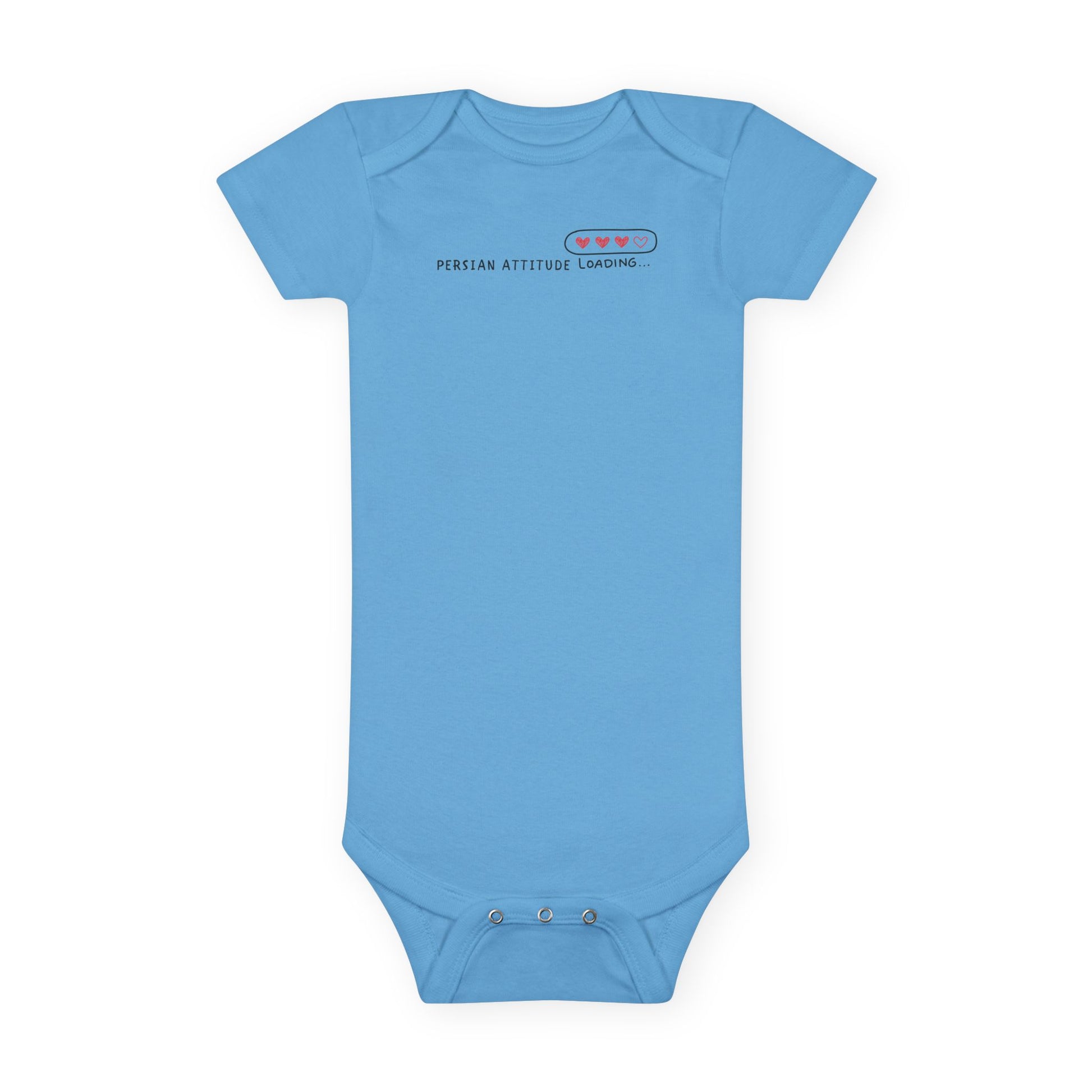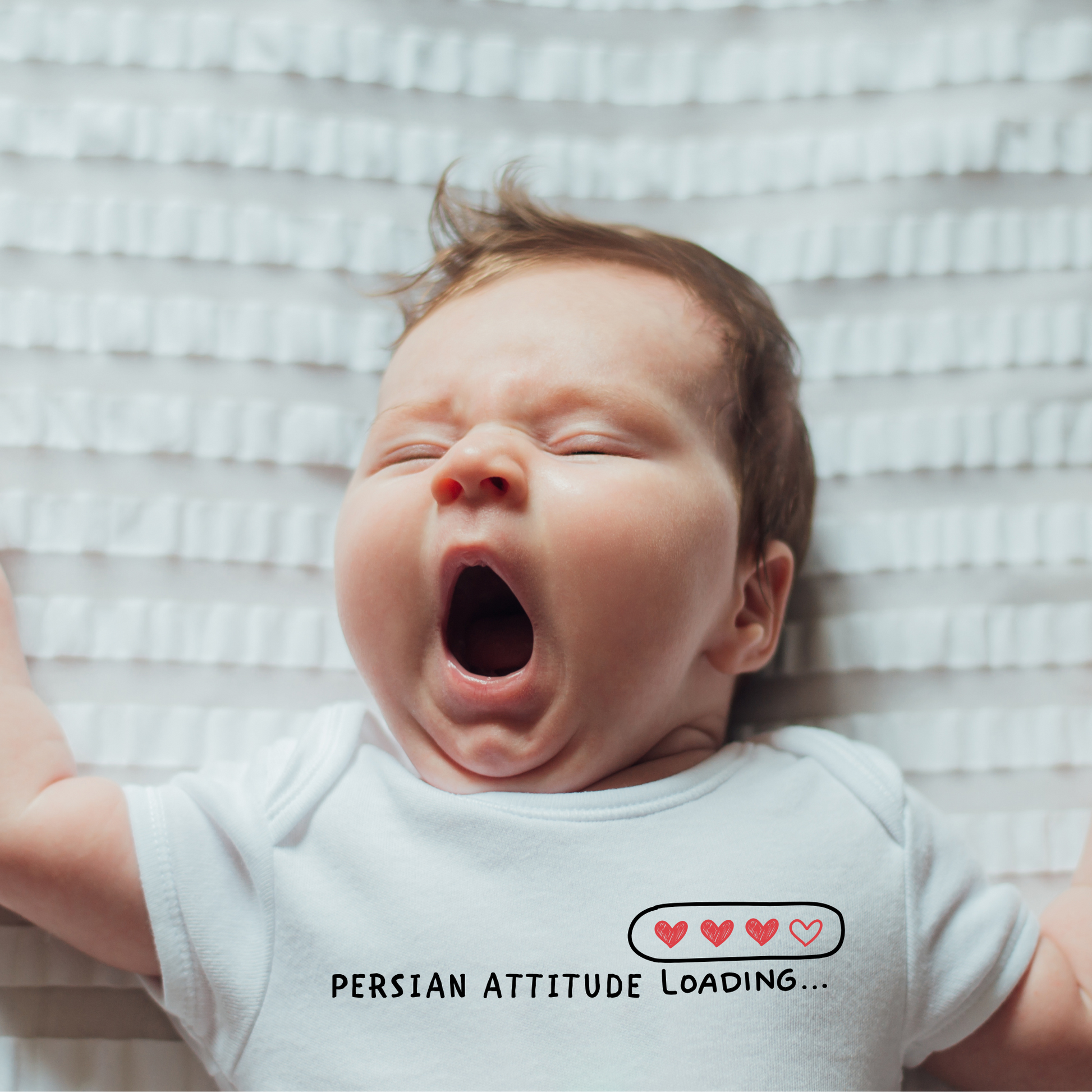 Start them young! This playful baby bodysuit with the phrase “Persian Attitude Loading…” is perfect for little ones with big personalities in the making. A witty nod to Persian pride and charm, this outfit brings both culture and humor into the baby’s wardrobe.