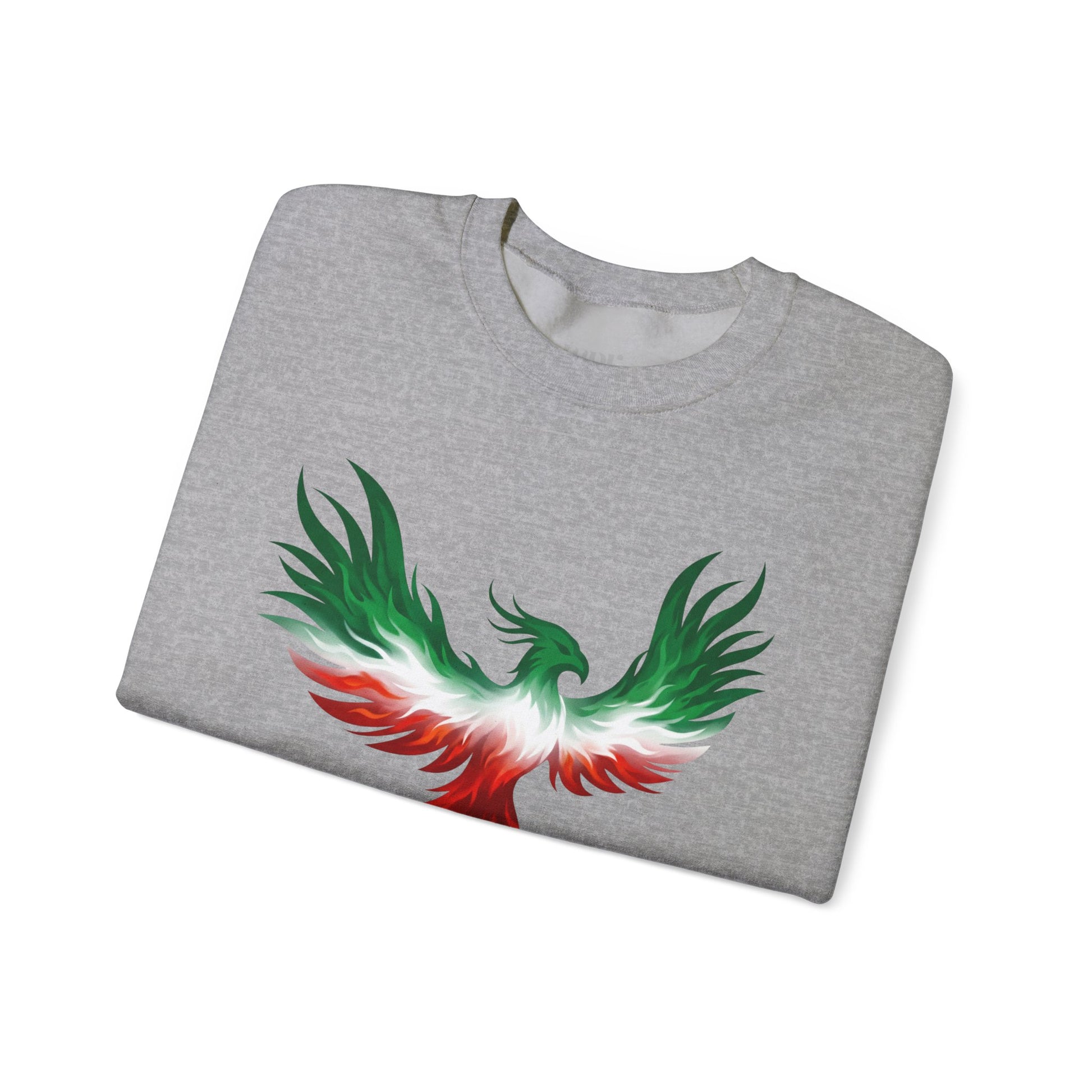 A striking sweatshirt featuring a phoenix (simorgh) symbol rendered in the colors of the Iranian flag. Representing rebirth, resilience, and the enduring spirit of Iran, the phoenix rises as a powerful emblem of hope and renewal. Designed with a bold yet balanced aesthetic and crafted for everyday comfort, this piece is meant to be worn as a symbol of strength, unity, and a future reclaimed.