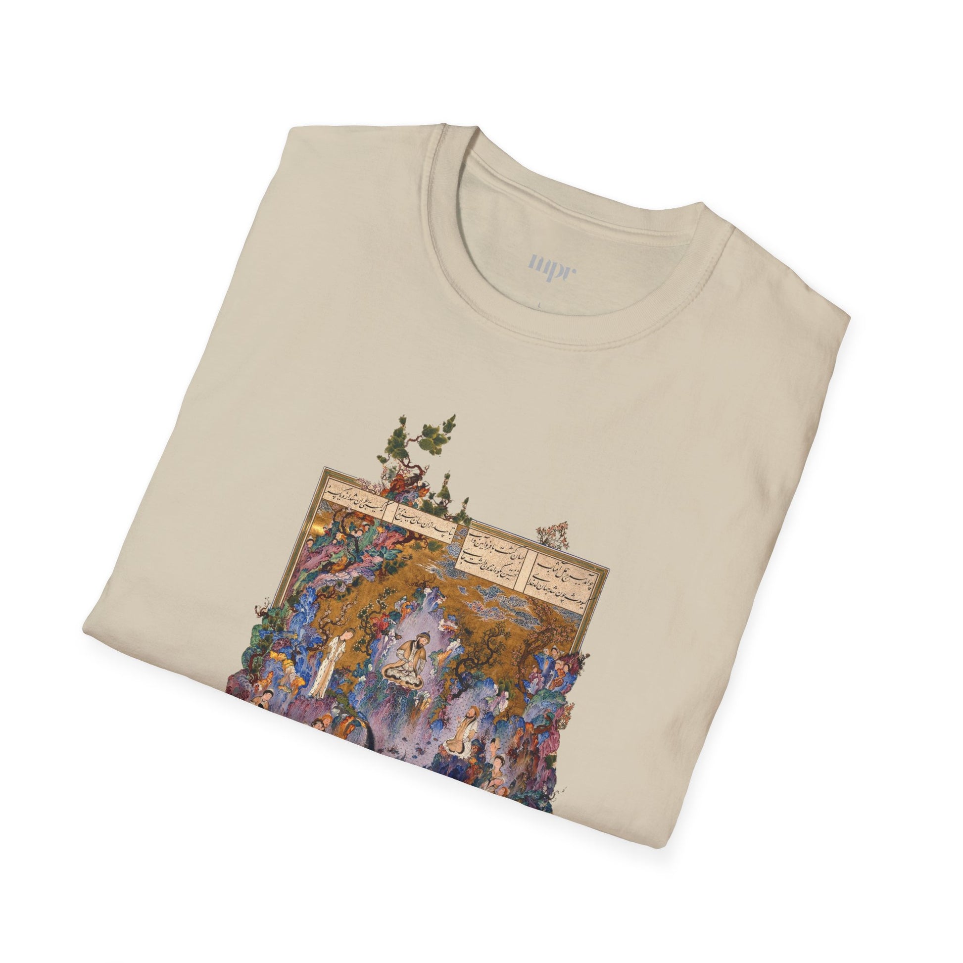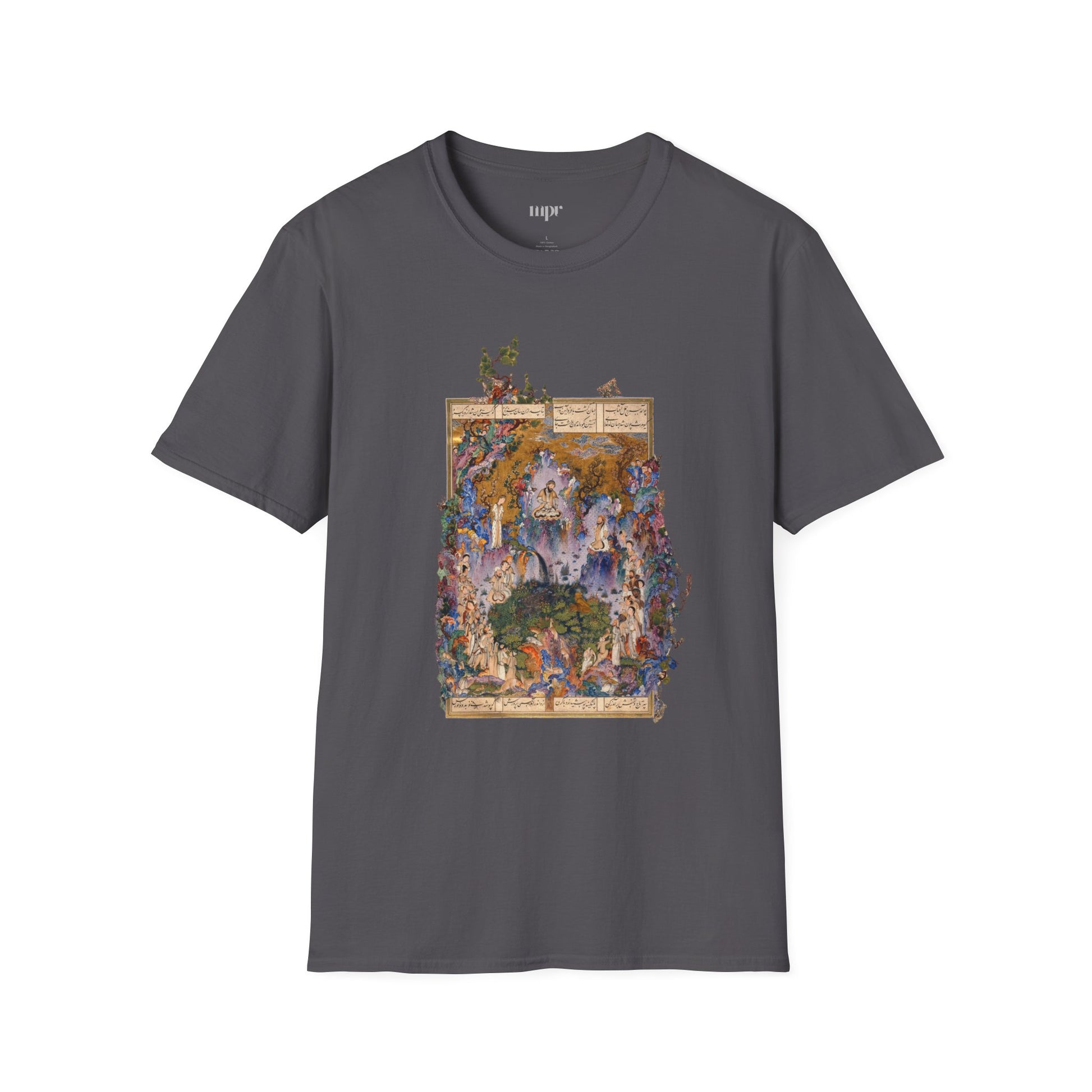 This T-shirt features "The Court of Gayumars", a breathtaking scene from the Shahnameh of Shah Tahmasp — where harmony, nature, and royal legacy meet.